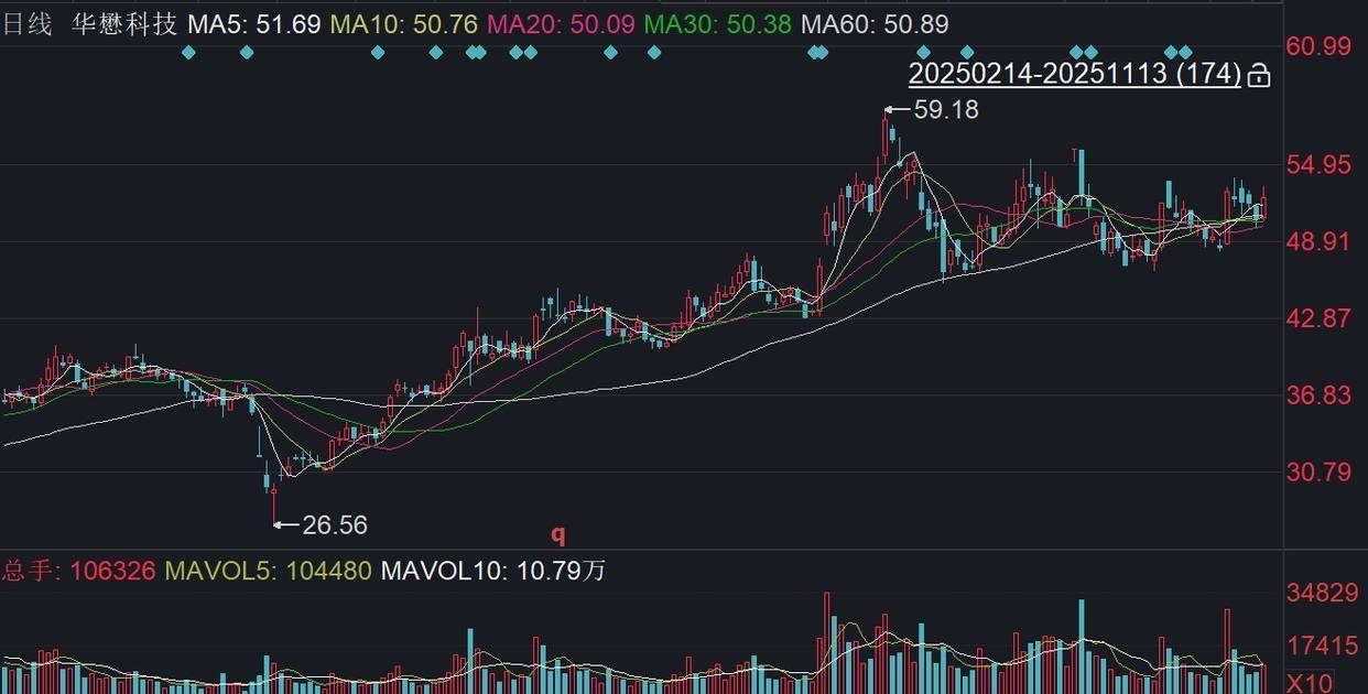 二级市场上,截至11月13日收盘,华懋科技上涨3.28%报52.22元/股,总市值约172.06亿元,今年来公司股价累计上涨约65%。